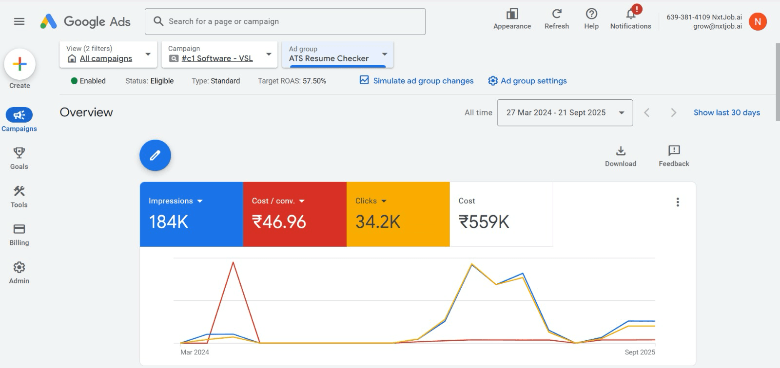 Multi-campaign approach with ATS Resume Checker as lead magnet driving 92% of conversions.